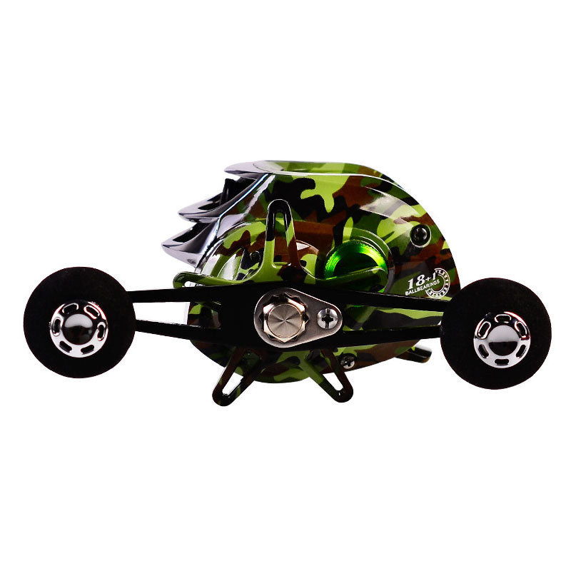 Designed for inshore/offshore saltwater fishing (targeting snapper, sea bass, or medium game fish), this casting reel blends corrosion resistance, heavy-duty control, and easy operation—paired with camouflage green finish for low-profile use.