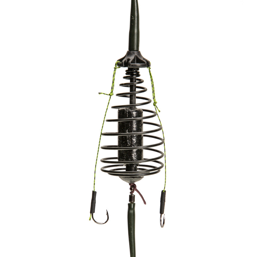 • Spring bait cage: Locks bait tightly, releases slowly to attract carp