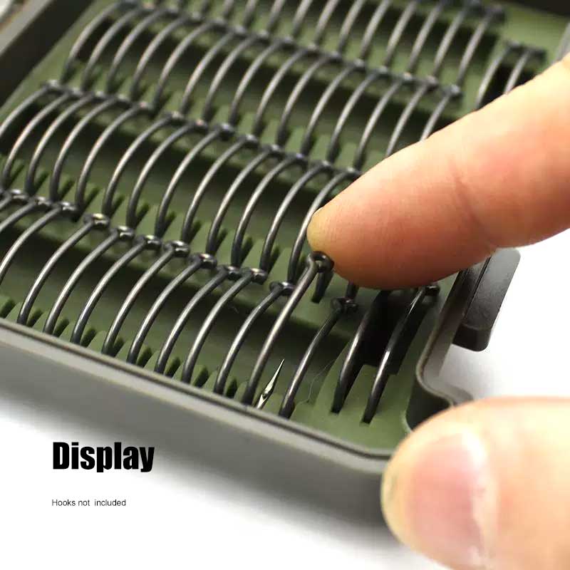 Designed specifically for carp hooks, the soft silicone slots hold each hook securely without damaging the point, helping maintain sharpness and performance. The durable ABS outer case provides solid protection, while the double clip closure ensures everything stays firmly shut during transport.