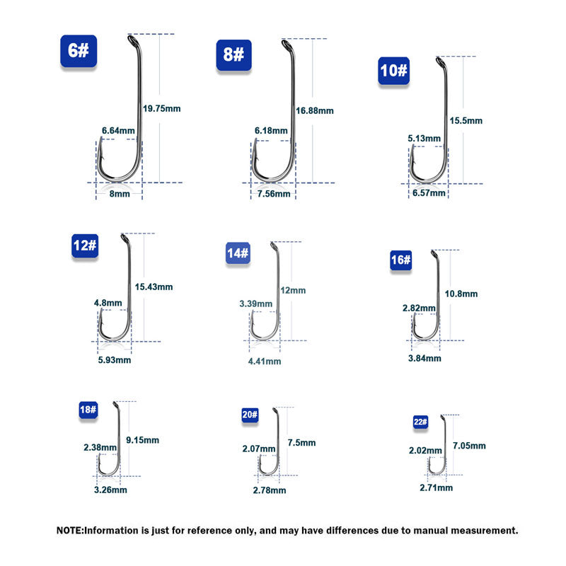 Its high-carbon steel build + curved shank + small size + anti-rust plating stands out: High-carbon steel (HRC 56) is tough yet fine-tipped—handles 8kg pull (perfect for small fish) without bending. The curved shank wraps snugly around tiny flies, locking them in place so they don’t slip during casts or drifts. Small size (#12-#18) matches delicate fly patterns, keeping presentations natural to trick skittish fish. Anti-rust plating resists stream muck and moisture, preserving sharp tips for multiple trips.