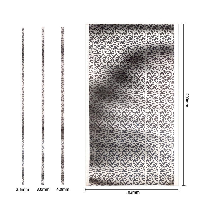 • Convenient quantity: 40 strips (2.5mm) / 32 strips (3.0mm) / 24 strips (4.0mm) per sheet