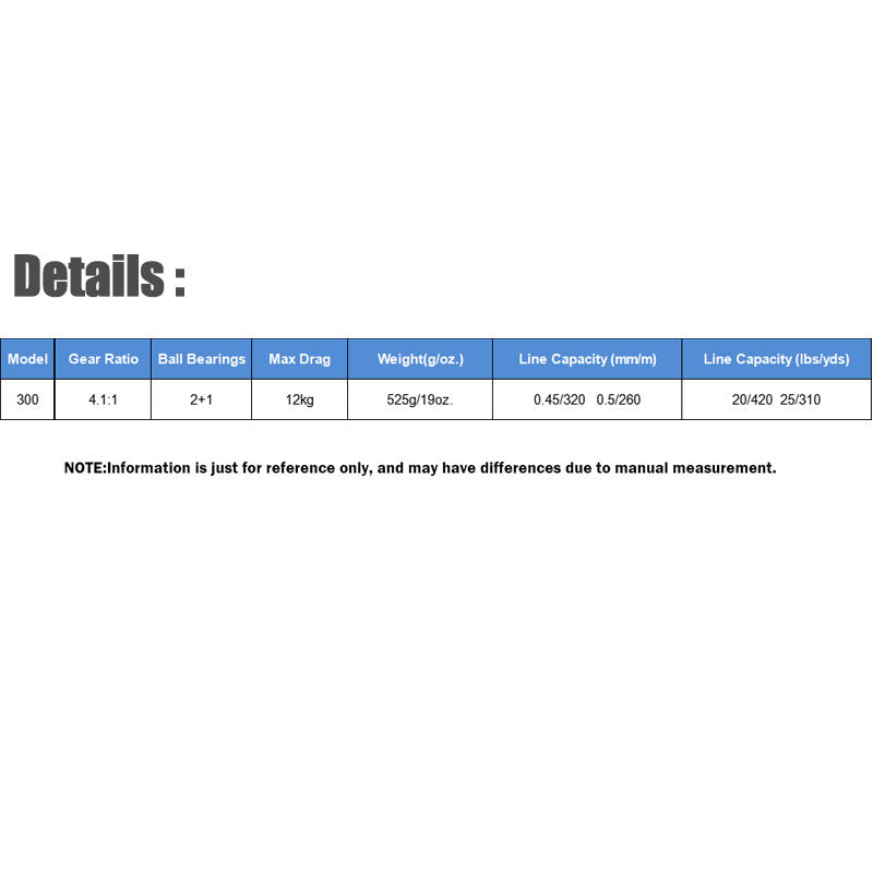 • Multi-disc Telfon drag system: Stable adjustable force (max 25kg), handles trophy fish runs