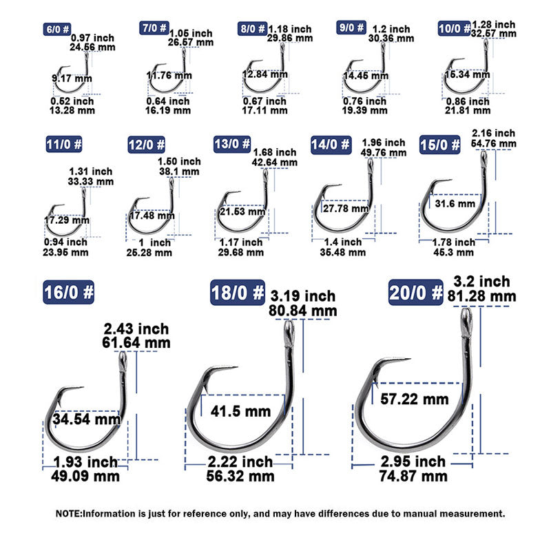 Tired of weak hooks bending under sharks, dull points failing to pierce tough mouths, or rust ruining saltwater trips? Our Stainless Steel Heavy-Duty Shark Circle Hook fixes these—thickened steel resists bending, sharp tip penetrates fast, anti-rust coating lasts, and circle design prevents deep hooking (ideal for sharks, tuna, marlin; perfect for live bait/heavy lures).
