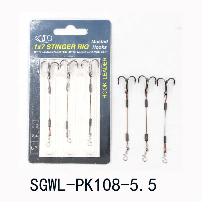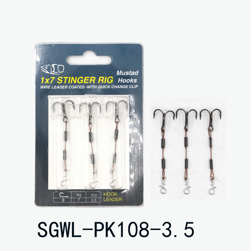 The 1X7 Stainless Steel Stinger Rig is built for shallow water fishing (with 21–30cm/8–12in soft lures) and trolling, featuring a premium Mustard Hook and tough 7X stainless steel wire. Its machine-crimped wire resists bending in shallow, weed-rich areas, while the quick change clip cuts down on lure-swap time—no fumbling with knots—and keeps baits secure during casts. The Mustard Hook boosts hooking success, especially for fish striking soft lure tails, and this pre-tied rig saves you time you’d otherwise spend making homemade setups.