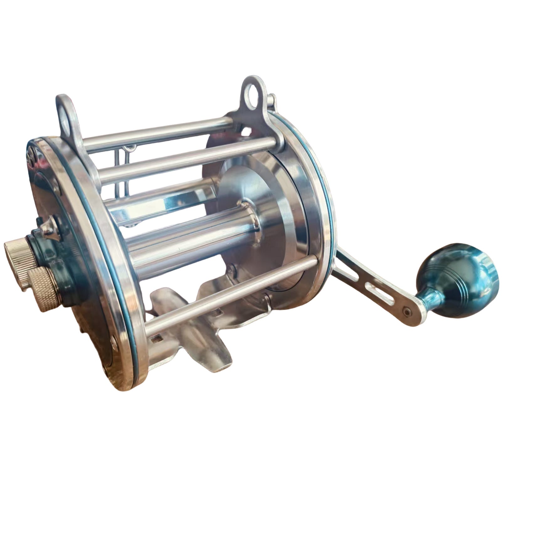 Tailored for offshore boat trolling & deep-sea big-game fishing (targeting tuna, marlin, amberjack), this 2025 newly developed drum reel highlights a dedicated line guide and heavy-duty anti-corrosion components—effortlessly handles saltwater immersion, violent fish pulls, and line tangles during long battles.
