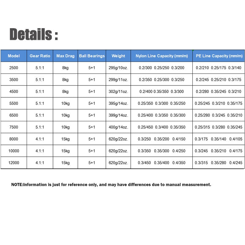 Engineered for saltwater surf fishing (beach long-casting, inshore light game, offshore big-fish angling) – 5.5K/7.5K ideal for small-to-medium sea bass, 12K for large sea catfish/yellow snapper. Covers multi-line-capacity needs, focusing on long-casting efficiency, saltwater durability and big-game control: