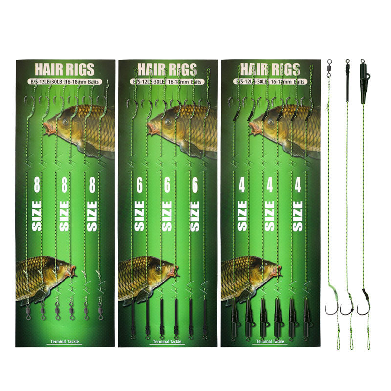Imagine rigging up at your favorite carp spot: pick the perfect size from multiple options to match your bait, attach a 12 - 20mm boilie or pellet with ease. The wide gape hook locks the bait firmly and pierces carp lips effortlessly, while the 8 strand dyneema line stands up to tough tugs and sharp debris. The strong swivel spins smoothly, preventing line tangles—so you won’t lose trophy carp to gear failure. Grab this rig and fish with confidence!