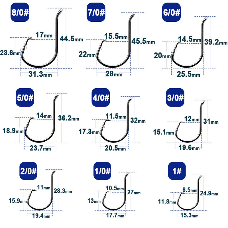 Crafted from heavy-gauge high-carbon steel, it stands up to freshwater giants (black carp, grass carp) and saltwater heavyweights (grouper, snapper), resisting bending or snapping. Its offset “eagle-beak” design works double: the angled point digs deep for secure holds (no slip-offs) and avoids over-penetration—preventing deep hooking, making hook removal easier and reducing harm to fish for catch-and-release. The wide gape fits live/dead bait (large shrimp, small fish), while the needle-sharp point pierces thick scales fast, cutting down on missed strikes. The anti-rust coating ensures durability in both fresh and saltwater.